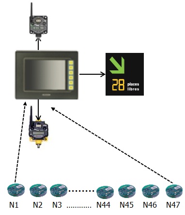 由于單個停車場的車位有時可以達到幾百,甚至上千個。所以為了能夠讓無線網絡覆蓋整個停車場,需要對停車場進行區(qū)域劃分,形成若干個獨立的子網絡。每個子網絡由一個邦納SHP控制器進行數(shù)據(jù)預收集。同時將本區(qū)域空車位數(shù)量傳送給LED引導屏,方便車主選擇停車位。