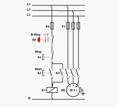 在等級(jí)B和等級(jí)1中,安全控制系統(tǒng)對(duì)故障的承受能力主要是通過(guò)采用適當(dāng)?shù)脑骷?lái)實(shí)現(xiàn)。如圖所示,保險(xiǎn)絲F0和急停按鈕S0串聯(lián)在主控回路中。若采用合理的保險(xiǎn)絲和可靠的急停按鈕,這個(gè)回路里的風(fēng)險(xiǎn)我們是可以接受的。但當(dāng)安全控制電路中出現(xiàn)任何一個(gè)單一故障,如急停按鈕觸點(diǎn)焊死,都會(huì)導(dǎo)致安全功能的丟失。故這個(gè)控制回路的安全等級(jí)只能夠是B級(jí)或1級(jí)。
