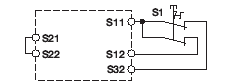 如果是雙通道不檢測觸點(diǎn)間短路故障工作方式的話則是短接S21和S22,兩個常閉觸點(diǎn)分別置于S11和S12,S11和S32之間。