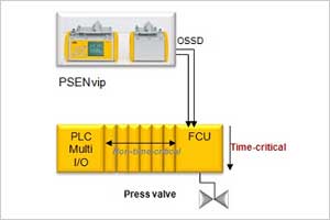 安全快速切斷模塊--PSSu K F FCU帶有12個安全數(shù)字量輸入和4個安全晶體管輸出,其中有個8個安全輸入能夠直接在本地完成對相應(yīng)安全輸出點(diǎn)的快速切斷控制,短切斷時間可至350μs。該模塊結(jié)合PSS 4000自動化系統(tǒng)可應(yīng)用于高速金屬成型設(shè)備,例如高速折彎機(jī)等。此外相對傳統(tǒng)的快速切斷模塊,PSSu K F FCU的安全輸入和安全輸出之間還具有可編程功能,靈活性較高。