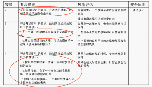 在危險(xiǎn)機(jī)械的設(shè)計(jì)中,等級(jí)B和等級(jí)1很少使用。通常常使用的是等級(jí)2,3,4。這些安全等級(jí)的具體描述如下: